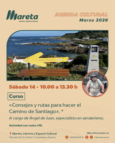 En esta iniciativa presentará un carácter eminentemente práctico. “El curso está construido de una manera ágil y sencilla, apoyado por abundante material gráfico, ya que el ponente ha realizado cuatro veces el camino de Santiago y, en los próximos meses, tiene previsto realizarlo dos más”, explican los impulsores de la propuesta. Todo ello, por 10 euros, materiales incluidos. “Son sólo 10 plazas… ¡No te quedes sin la tuya!”. Las inscripciones se pueden realizar a través del correo electrónico (administracion@maretacultural.com), por WhatsApp (623 94 47 21) o directamente en Mareta, situada al lado del mercado de abastos arriacense. Además, habrá obras centrada en el trayecto a Compostela a disposición de los asistentes.