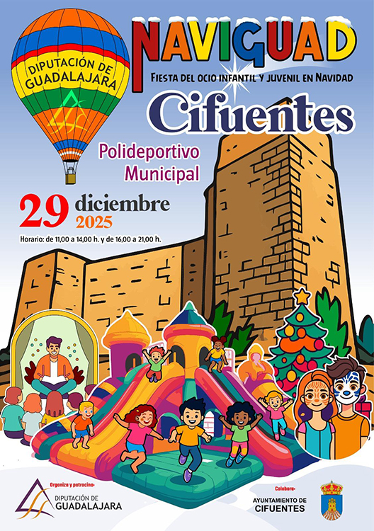 Cifuentes. Naviguad Fiesta de ocio infantil y juvenil en Navidad Lunes 29 de diciembre desde las 11,00 horas Polideportivo Municipal de Cifuentes