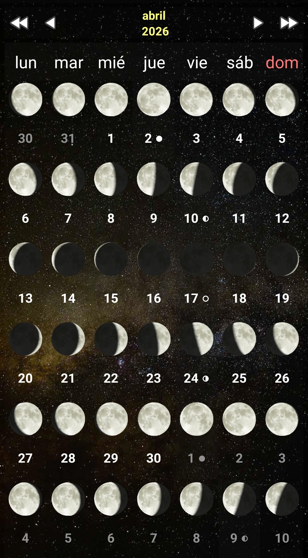 Horas de salida y puesta de la luna