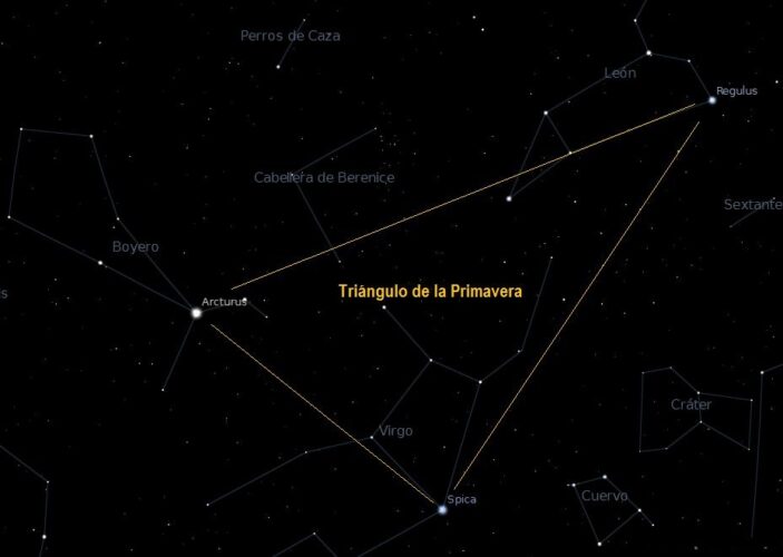El Triángulo de Primavera es un asterismo formado por Arcturus en el Boyero, Spica en Virgo y Regulus en Leo. Algunos observadores usan Denebola en lugar de Regulus para trazar una versión más pequeña de esta figura. La eclíptica cruza esta zona del cielo, por lo que la Luna y los planetas suelen pasar por ella.