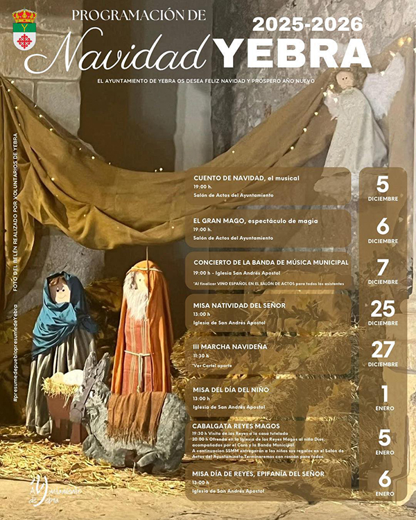 Yebra. Cabalgata de SSMM los Reyes Magos de Oriente Lunes 5 de enero, desde las 20,00 horas Yebra