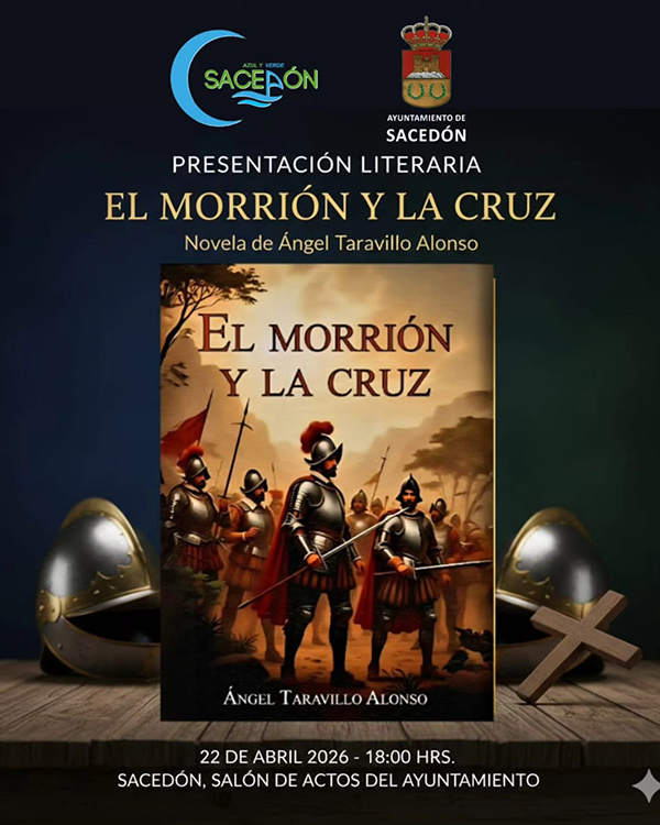 Sacedón. Presentación del libro: El Morrión y la Cruz de Angel Taravillo Alonso Miércoles 22 de abril, a las 18,00 horas Salón de Plenos del Ayuntamiento de Sacedón